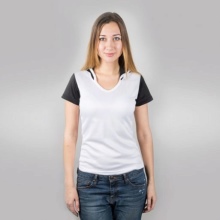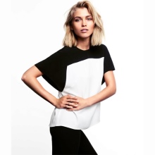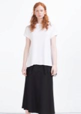 Unusual model has a white T-shirt, complemented by black sleeves. It is characteristic of the style of sport chic. This is both a simple thing, but at the same time has its own peculiarity.