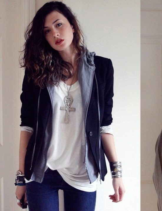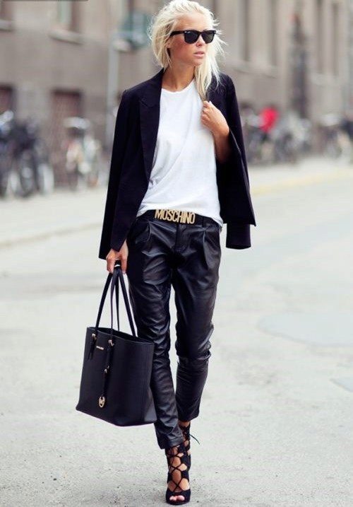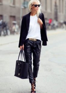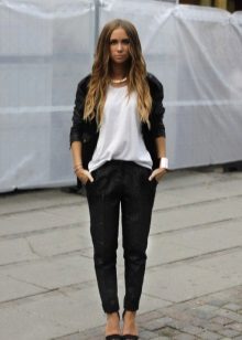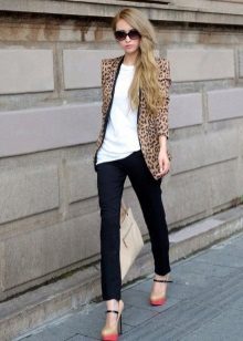If we talk about the top, then there is no limit to the variety. These are jackets, blazers, jackets and vests. With them you will create a business image. In cool weather, you can throw a knitted cardigan. It can also be a leather jacket. A scarf, tied around the neck, will complete the look.