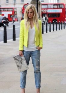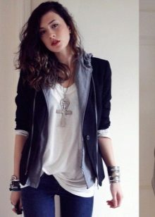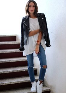 These are jeans of different styles, including worn. With this combination you will create a casual image, ideal for everyday life.