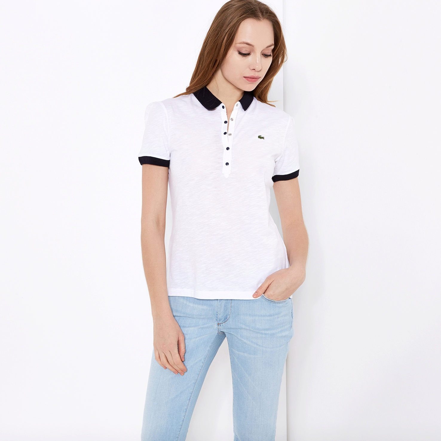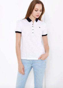 Another modification of a simple white T-shirt is a polo shirt. This model has a neckline and fastens with two or three buttons.