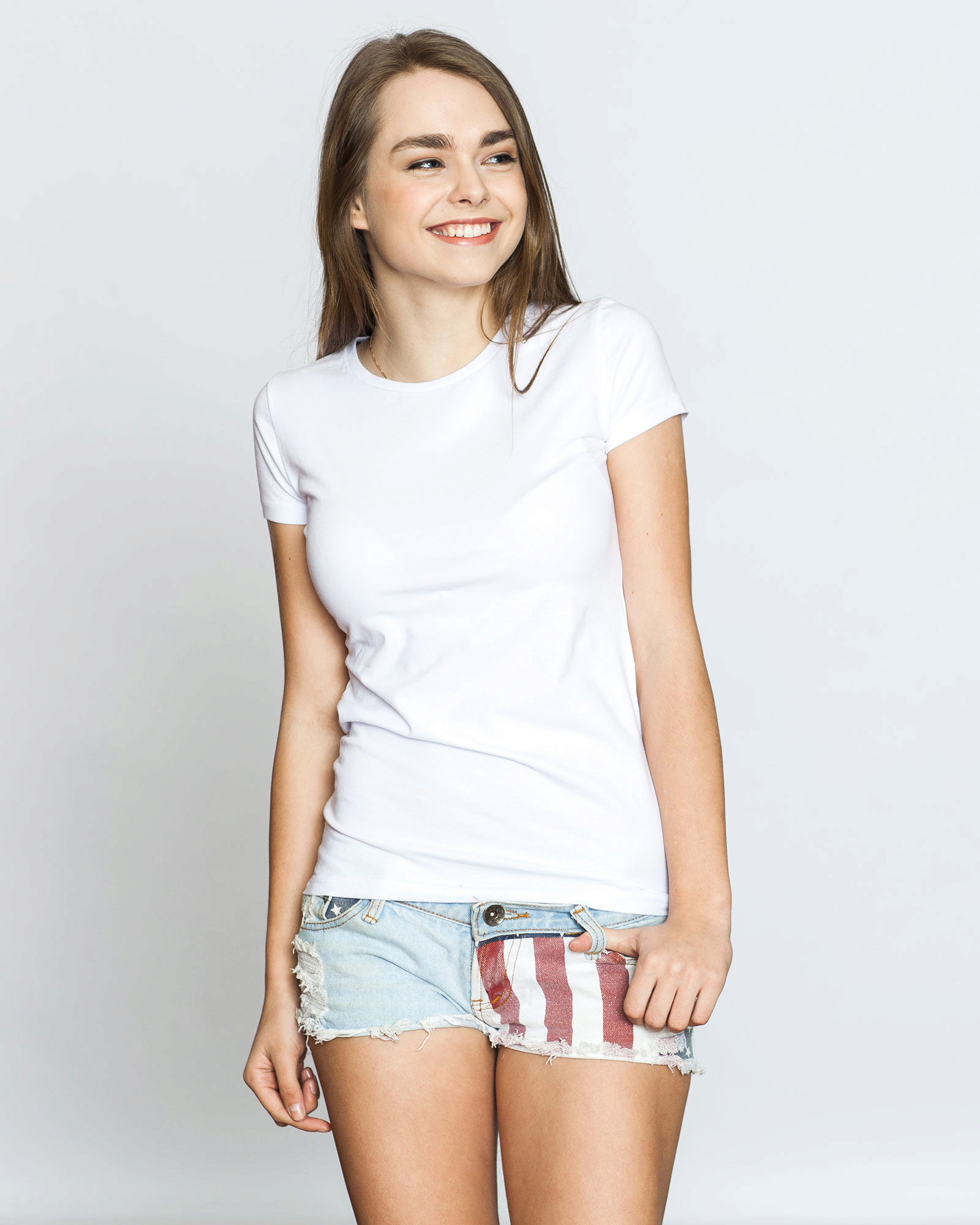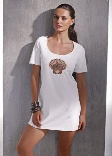 The most popular model is without a pattern, with short sleeves and a round neck, sitting loose on a silhouette or a little tight on it. This is a must have of any wardrobe.