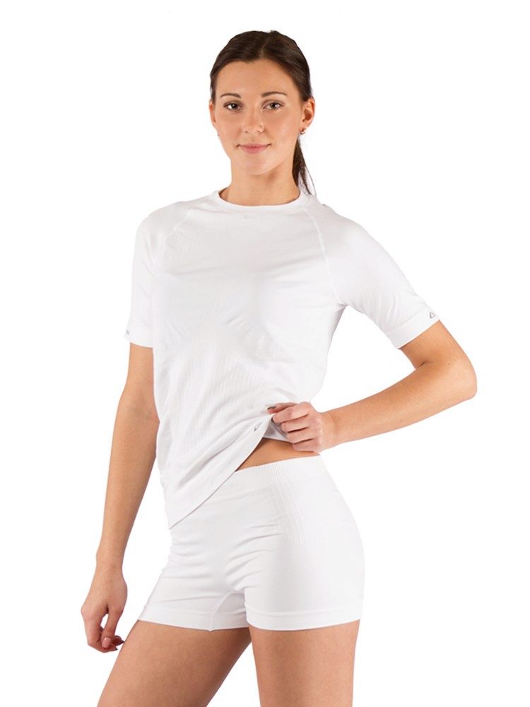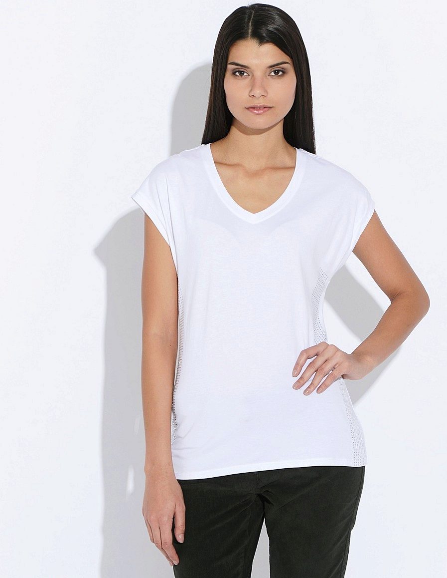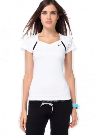 White T-shirt is perfect for creating a sporty look. It can be worn with leggings, breeches or a suit.