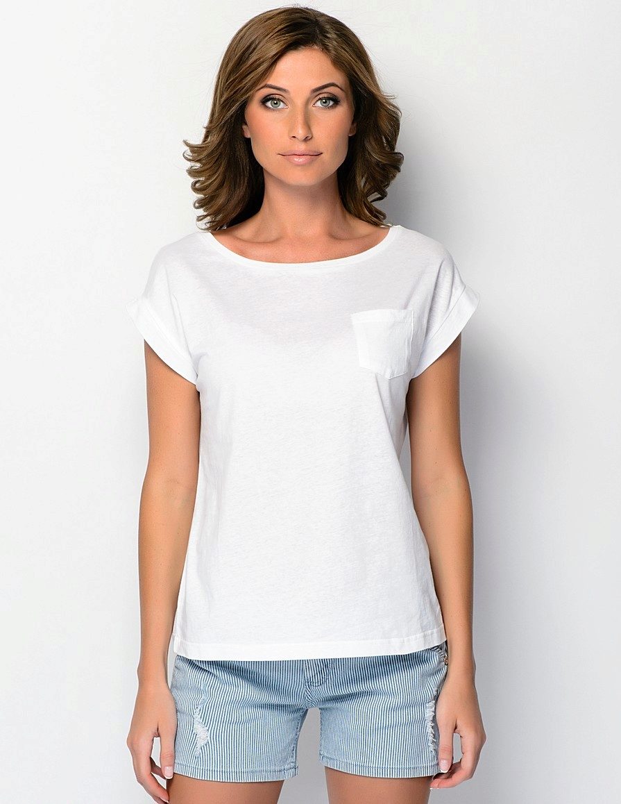 Originality has a white T-shirt with one pocket on the chest. This is just a detail of the decor. Such models can be seen in all the collection of well-known brands of the mass market, as well as well-known designers.