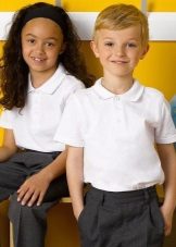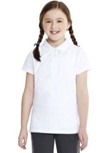 To attend school, it is best to use plain versions of T-shirts, not bright colors, so as not to go beyond the school uniform. But the most suitable option would be a polo t-shirt of various light shades, since it is very similar in appearance to the shirt.