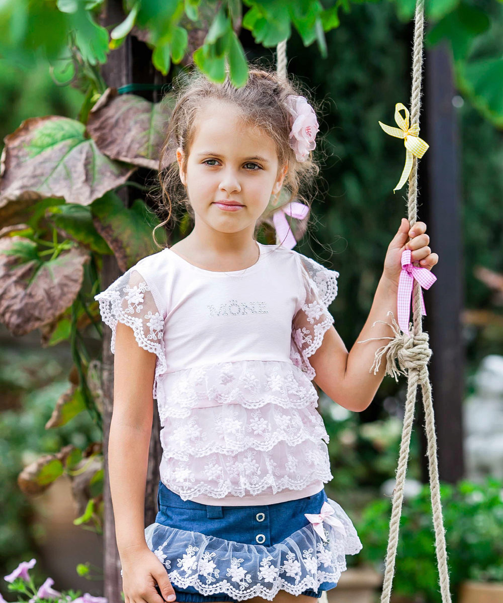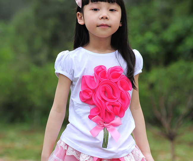 Elegant models of children's t-shirts can be made in completely different styles. Some of them are decorated with elegant embroidery, which can be both thematic and made in the form of flowers and patterns.