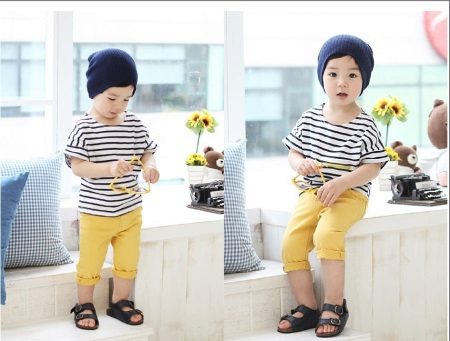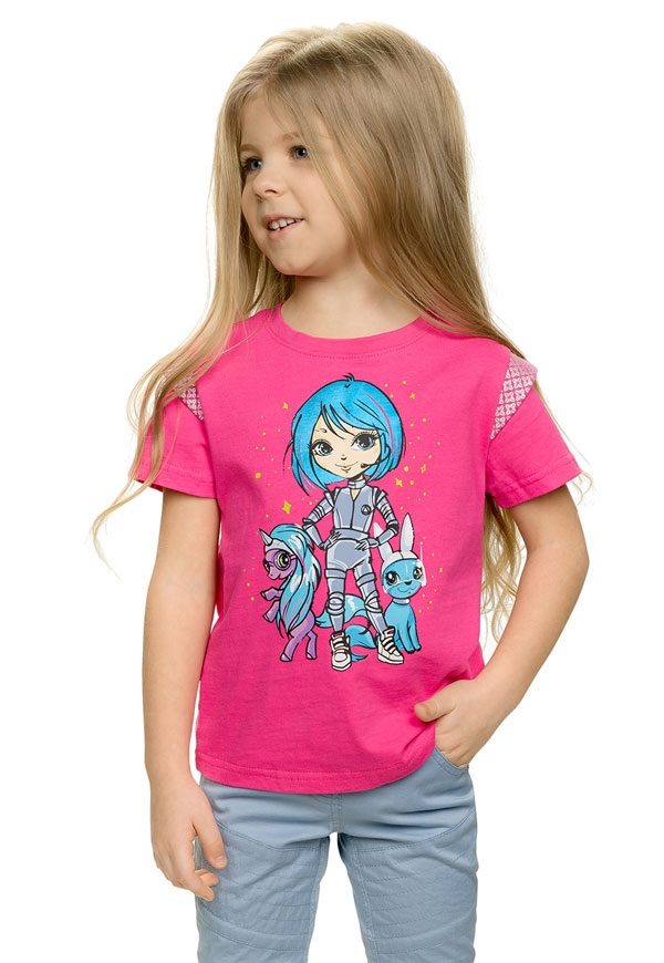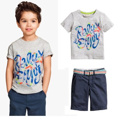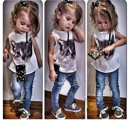 In the matter of combining T-shirts with other children's things, everything is quite simple: shorts, skirts, various children's trousers and jeans work well as the bottom of the outfit. As for shoes, sandals, shoes, sneakers and various options for warm shoes are fine.