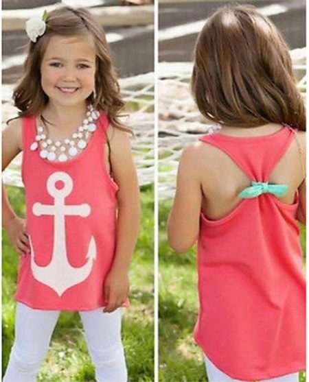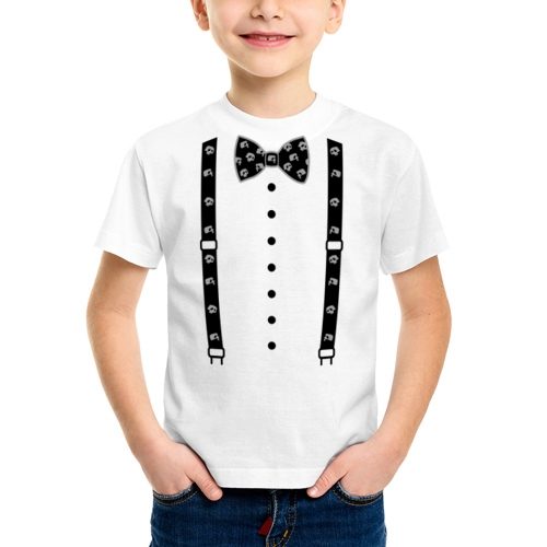 Models of T-shirts for girls can be decorated with beads, bows or lace stripes, models for boys can have decorative prints in the shape of a jacket, bow tie or bow tie.