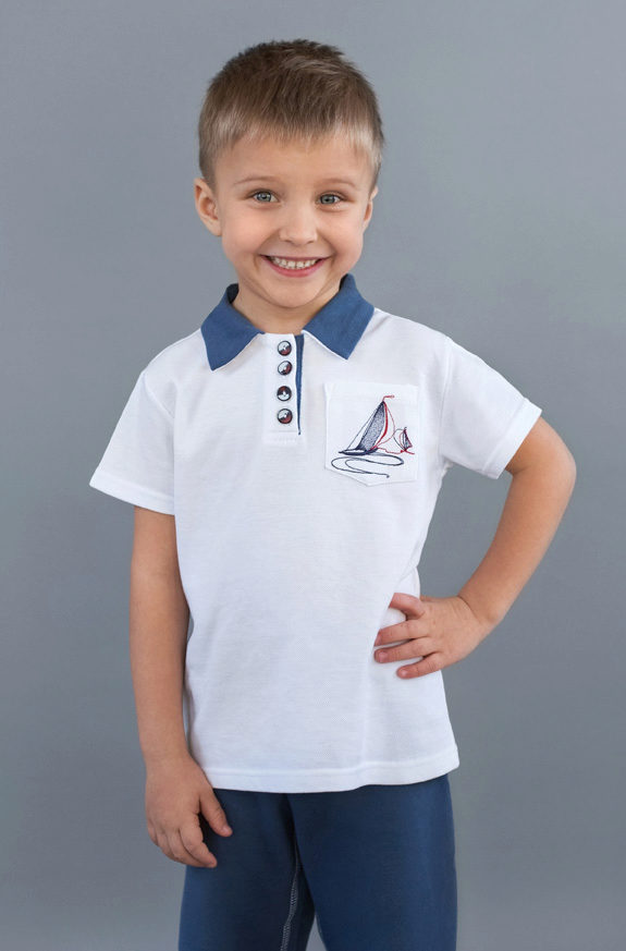 In addition, the children's t-shirt of a polo model will be well combined with a children's classic suit or with simple straight cut trousers, if suddenly there is a need for such a dress.