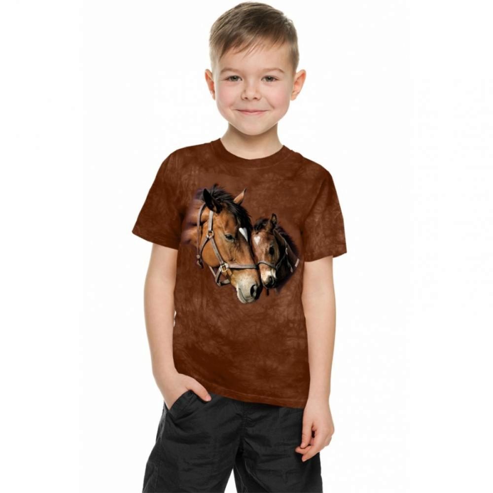 T-shirts with a picture of horses have gained unprecedented popularity this season. For more young children are relevant images of horses from cartoons and fairy tales. Adolescents prefer the image of purebred horses in natural form, with a developing mane.