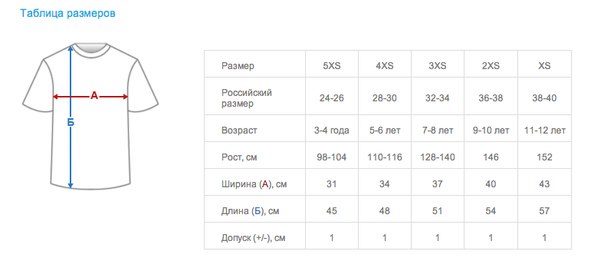When choosing the size of a children's t-shirt, first of all, it is necessary to take into account the height of the child, girth in the chest and waist. You should not choose shortened models or T-shirts that do not fit, as this may somewhat hamper the movement of the child. It is better on the contrary, choose a thing a little larger to leave room for growth. As a rule, the label indicates the growth corresponding to the children's age, which greatly facilitates the purchase of things.
