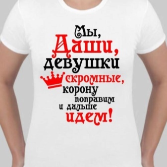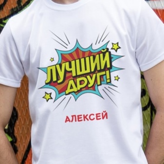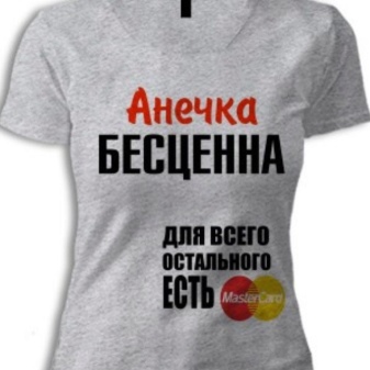 - In the shops that print souvenirs, there is a large selection of ready-made design t-shirts. All you have to do is choose the color, size and add the desired name. However, if you want to make a truly unique and interesting gift, it is recommended to come up with your own inscription, or at least rethink the ready-made options.