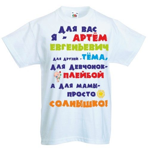 Children's T-shirts with names are very popular among the younger generation and their parents. This T-shirt will help your child quickly acquire new friends in the yard, in kindergarten or in the camp.