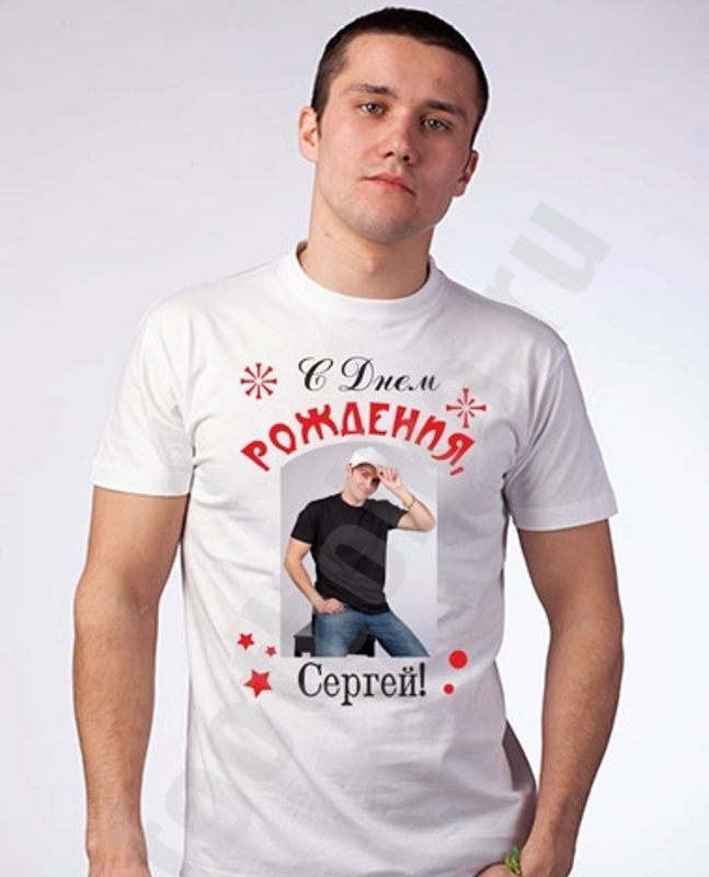 - T-shirt with the name and photo of the hero of the holiday - a universal version;