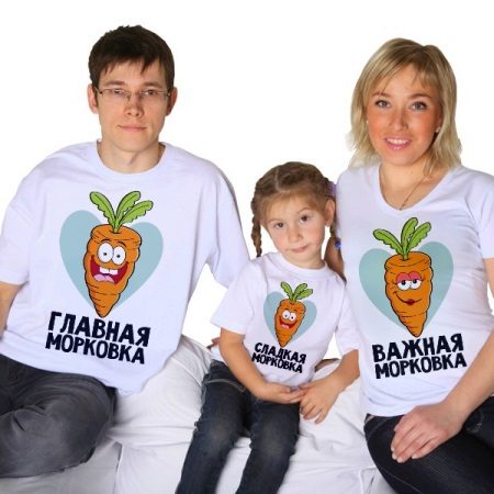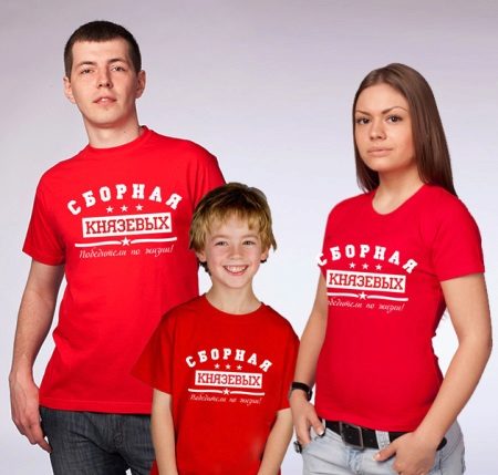 For family holidays often order a whole set of T-shirts for each of the participants of the celebration. For example, on the birthday of your child, not only the baby, but also his parents, may appear in nominal T-shirts.