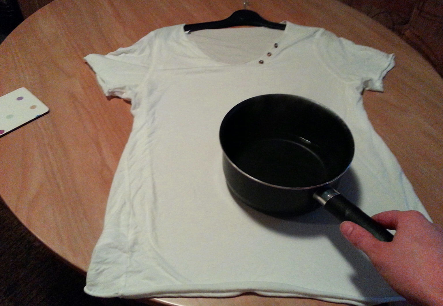 - Stretch the T-shirt, place it on a flat surface and press it down with something heavy.