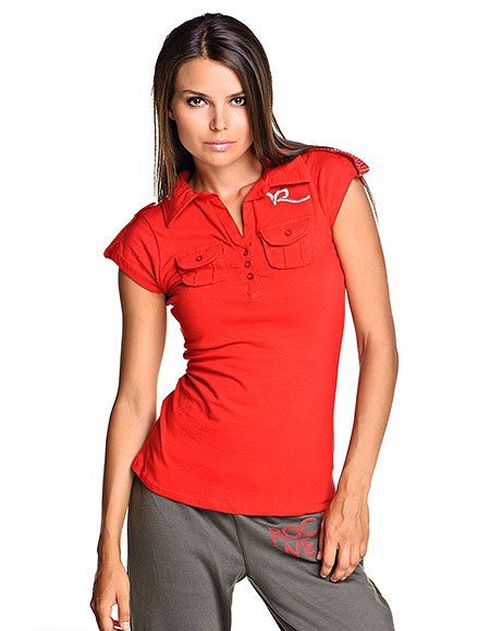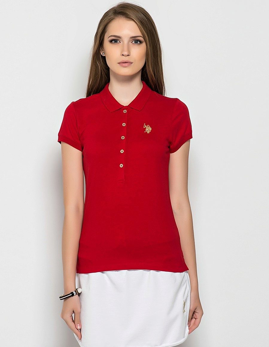 A polo shirt is another type of red t-shirt. This model has a neckline and fastens with a pair of buttons. Often, a polo shirt is perceived as a sports model. However, this is not the case. With it, you can create both everyday and classic images.