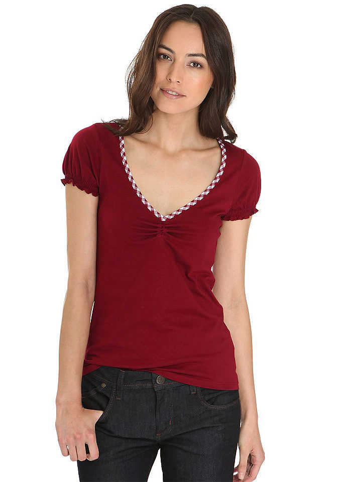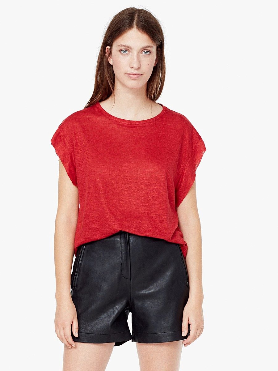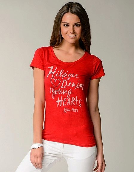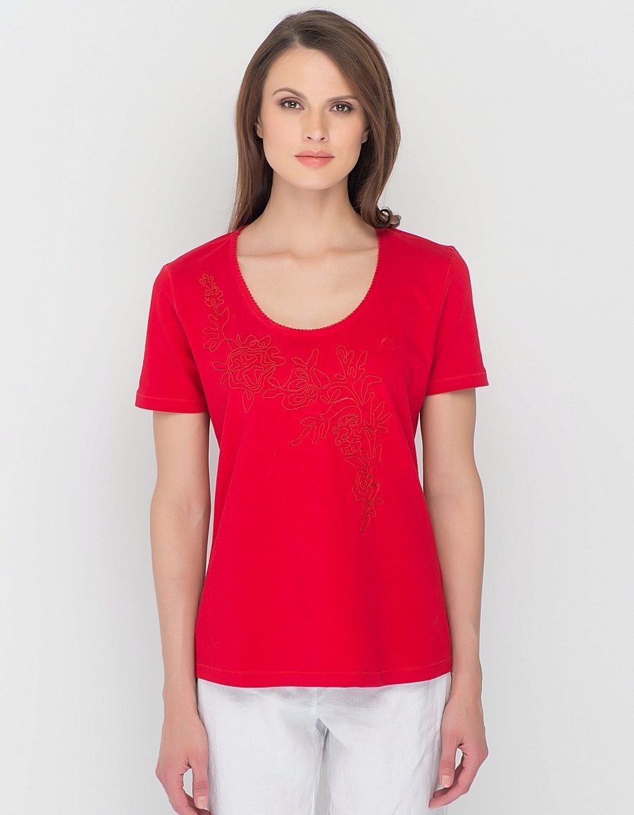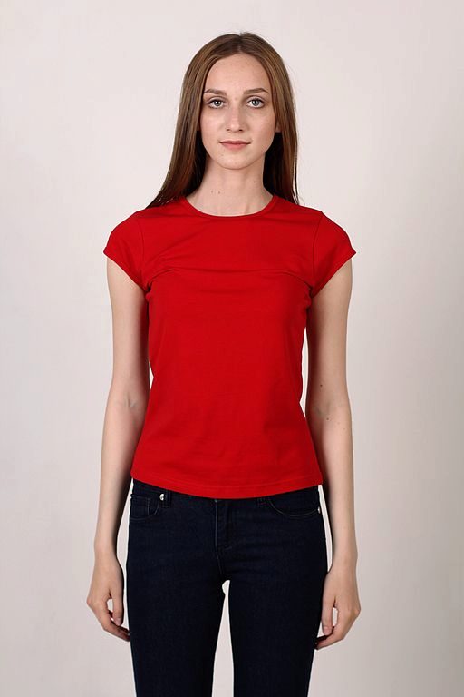 Red T-shirts are suitable for brave girls who are not afraid of experiments.