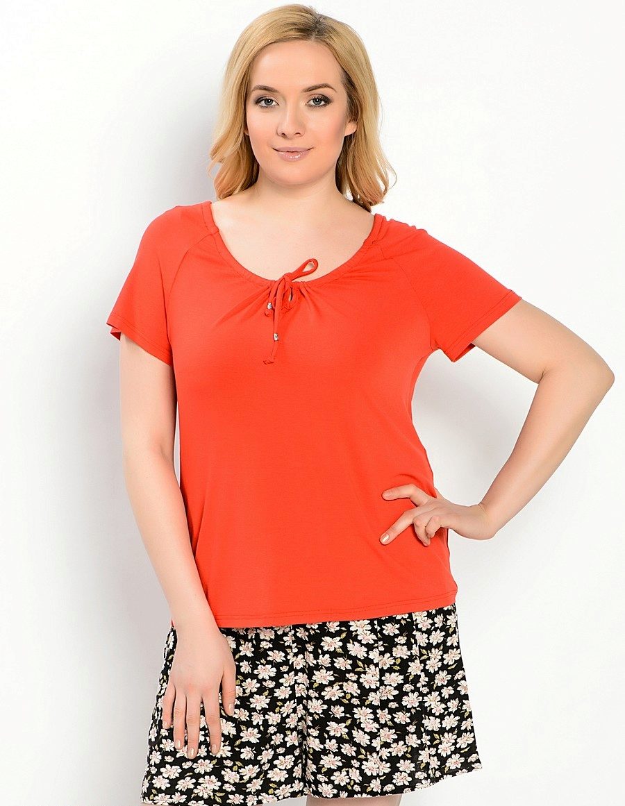 The most popular are the classic models with a round neckline and short sleeves. The silhouette is usually free or fitted.