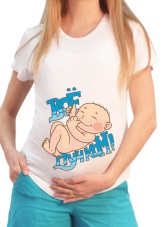 Putting on such a T-shirt, each expectant mother can be firmly confident in her irresistibility and catch herself with admiring glances and kind smiles of those around her.