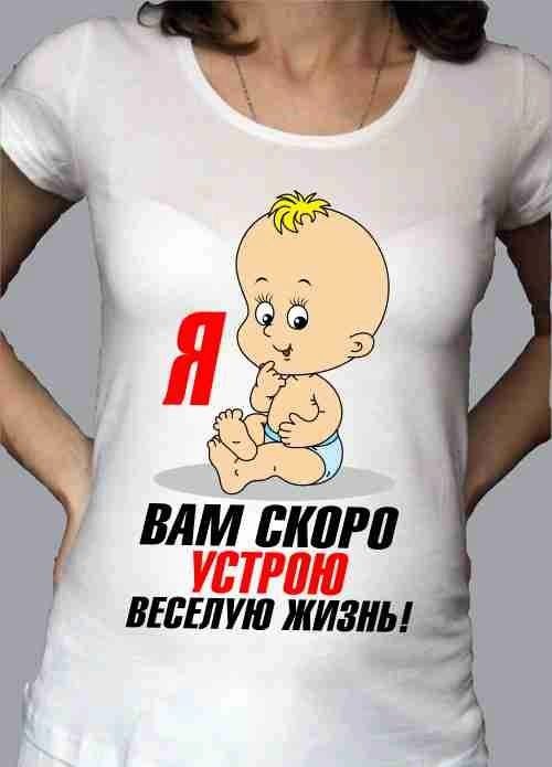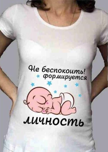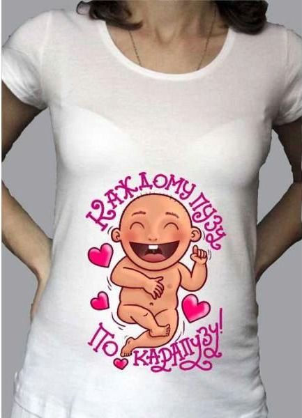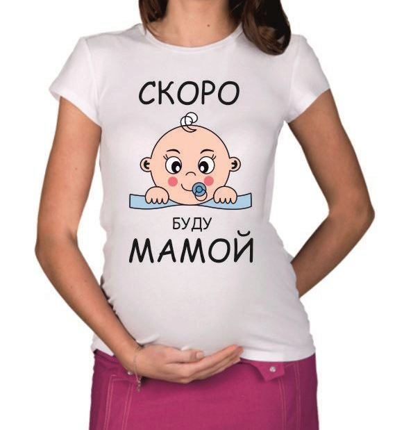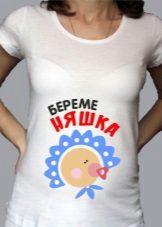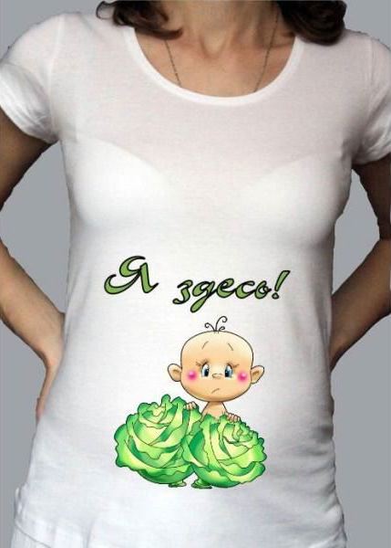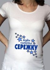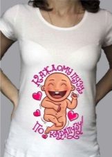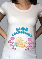 The future mother can not only take advantage of ready-made ideas, but also show her imagination by inventing an individual version. Fortunately, to order a T-shirt with a selected lettering and a suitable print, today is not difficult.
