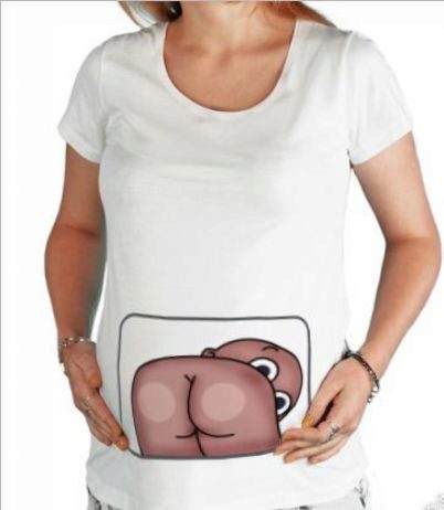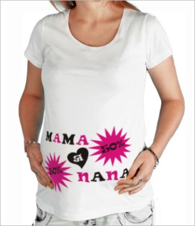 The variety of T-shirts with inscriptions is so great that every expectant mother can choose a suitable model with a pretty picture or a fun inscription without any problems.
