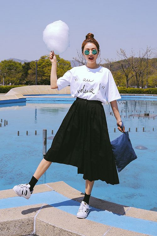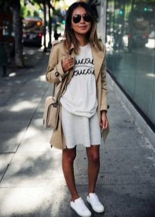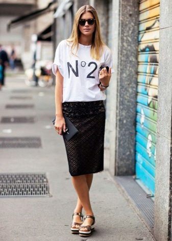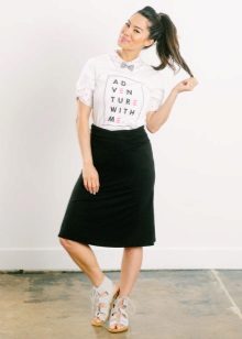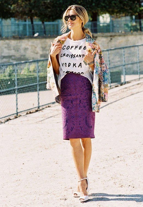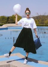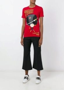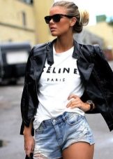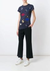 Every day there is nothing better than a comfortable T-shirt with an interesting print. You can wear it with any clothing that is convenient for you. It can be jeans, leggings, pants, skirt. From above you can throw a bomber jacket, jacket, leather jacket, cardigan. From the shoes you should choose something without a heel - sneakers, sneakers, loafers, slip-ons.