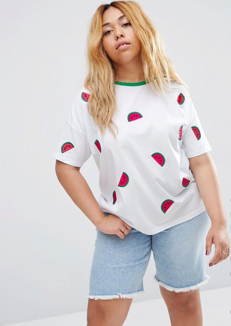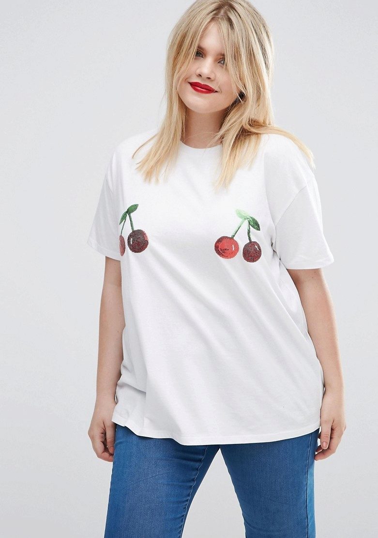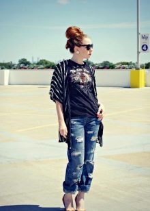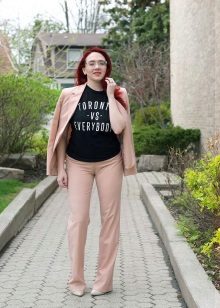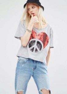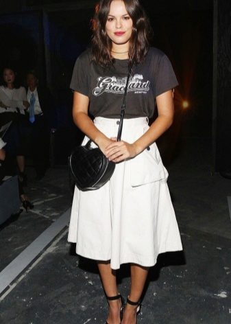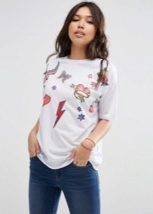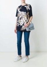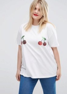 Choose a T-shirt in size, it should not be tight, but excessive bagginess is also not the best solution. Loose oversize t-shirts are suitable only for very thin girls.