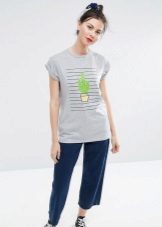Gray t-shirts with pictures will easily complement any casual look. If this product has a concise inscription, it will even fit into the business look. Wear a shirt with light or dark jeans, and if you want to add brightness to the image, pick up bright accessories.