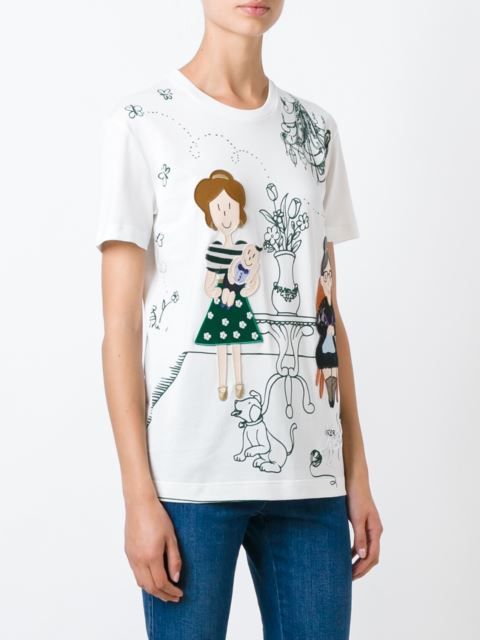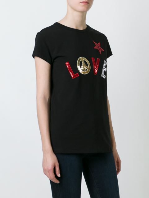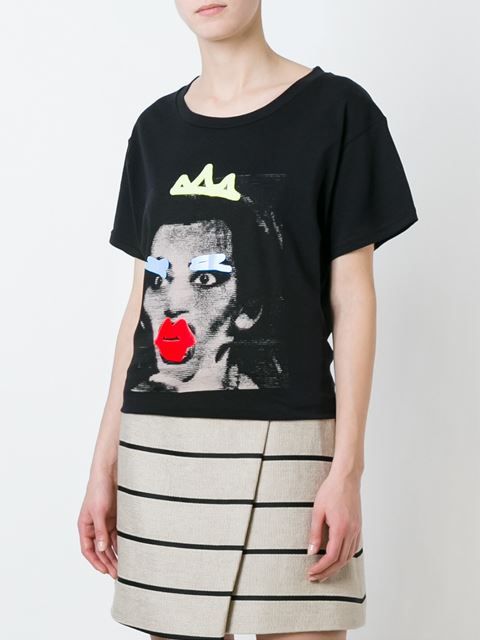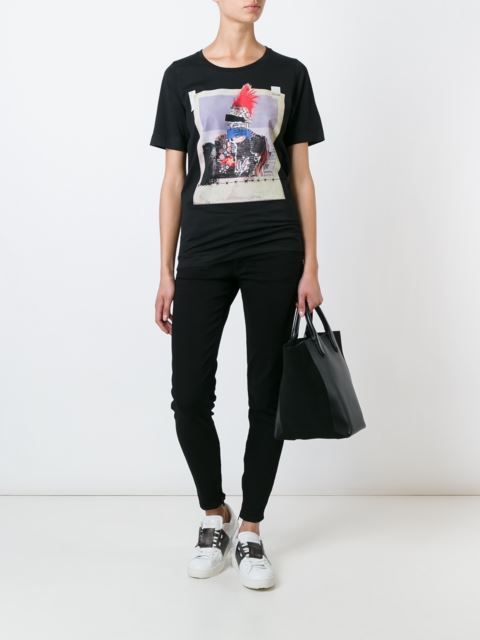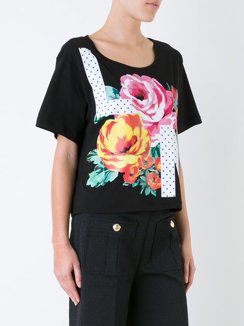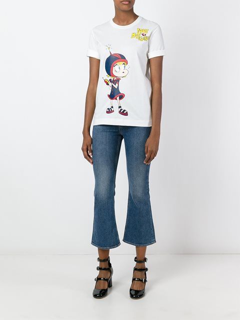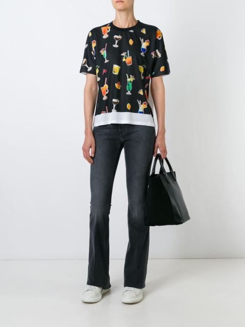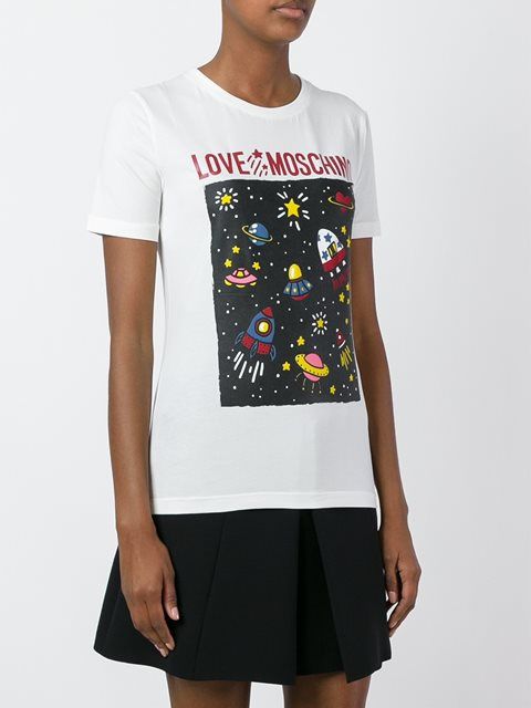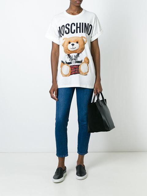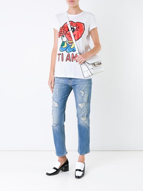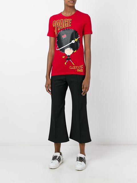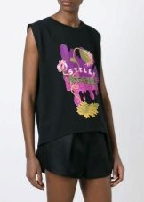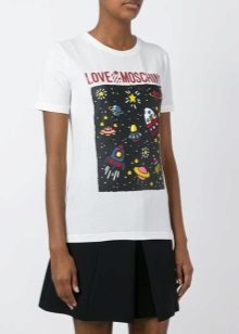 Well, in the creative t-shirt from Moschino you will definitely not go unnoticed! This brand is famous for its unusual prints and original design ideas, so it will appeal to brave girls who are not afraid to be in the center of attention.