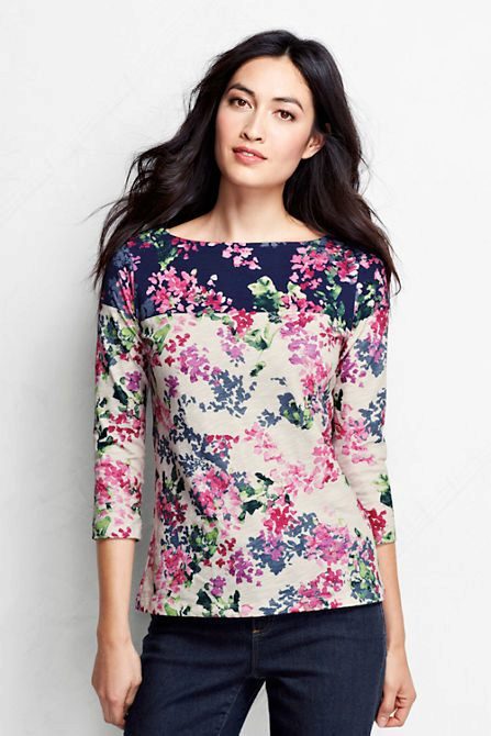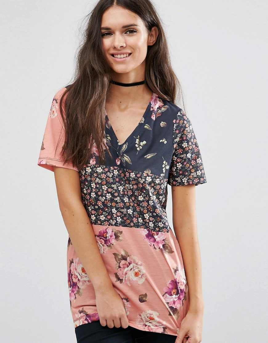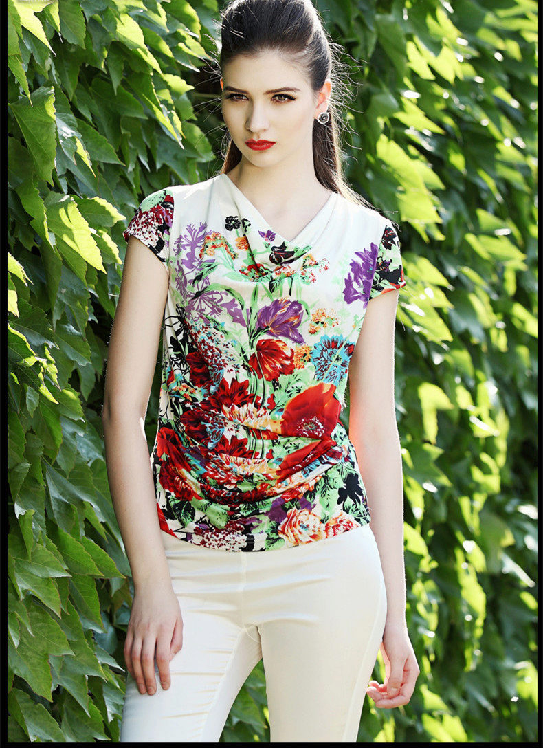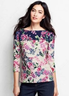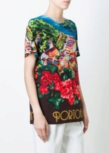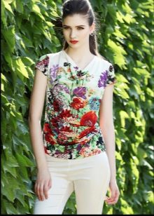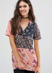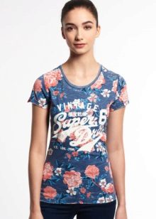 There are models with floral patterns, with large and small pattern, bright floral motifs. Such a T-shirt would be appropriate in any situation, be it a walk, shopping or a date. You can even pick up a tin with a laconic floral print for work that will successfully replace a shirt or blouse.