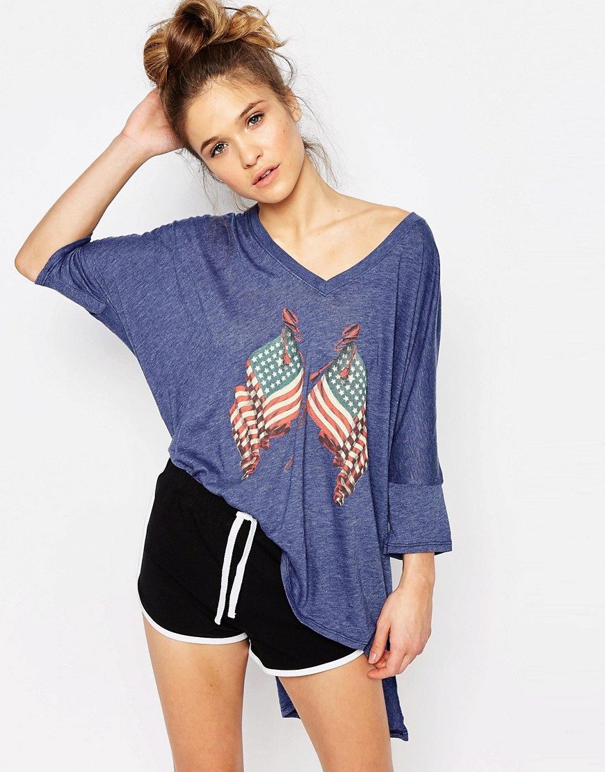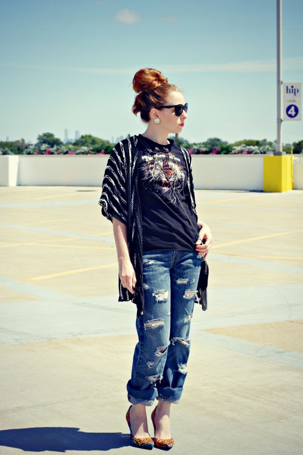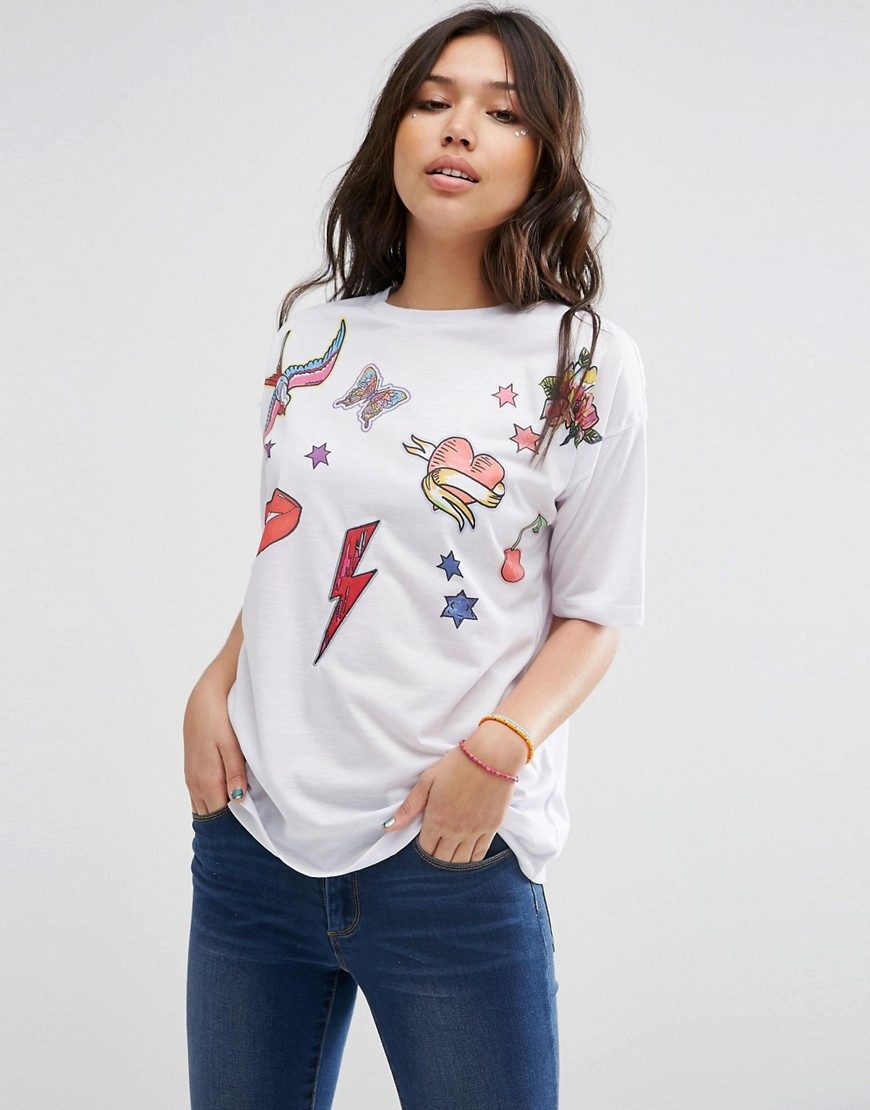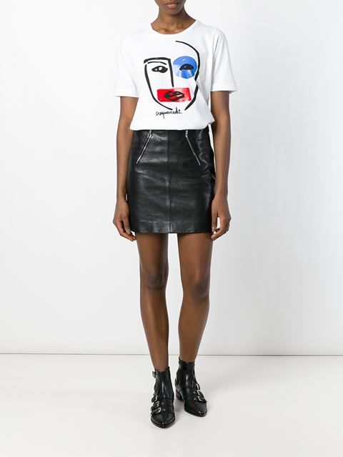 If you are going to a party, there is nothing like a bright print T-shirt! You can wear it with short shorts or jeans. A stylish miniskirt is also appropriate. Add a blazer or a leather jacket. Do not forget about high-heeled shoes, a small clutch and eye-catching jewelry that will help you to be the center of attention all evening.