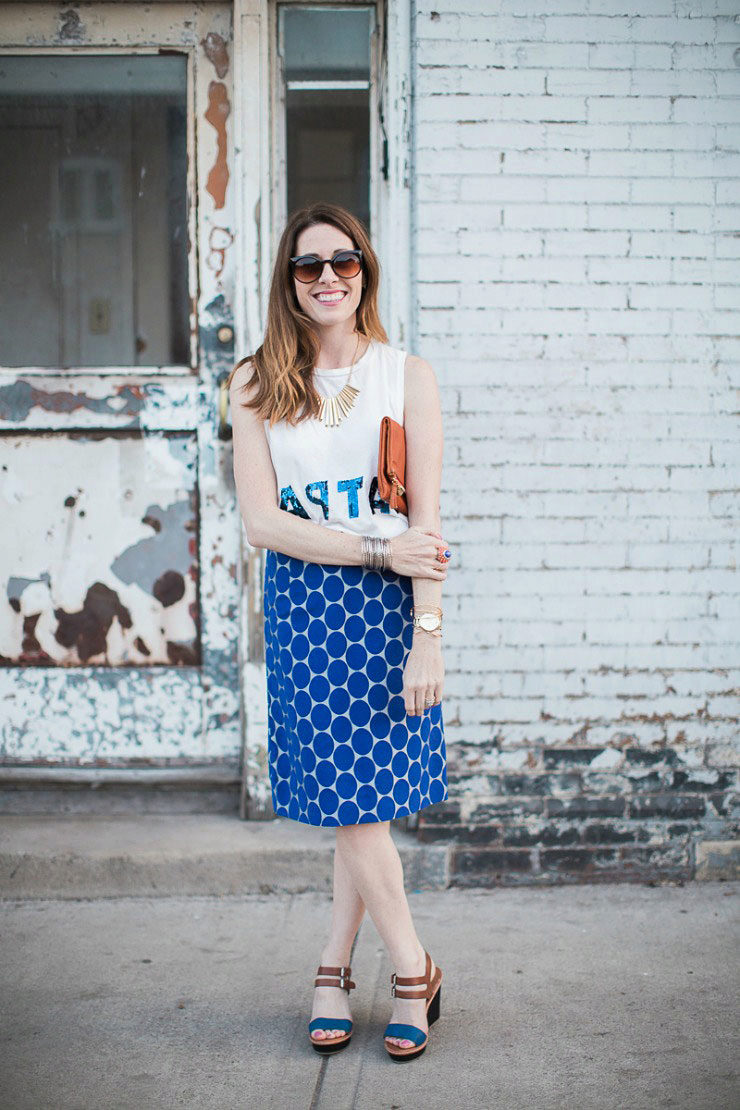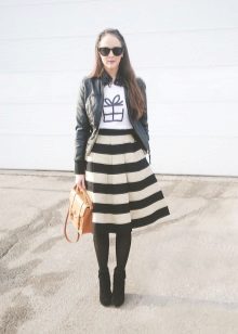 This may be a mini, midi or maxi skirt. Shortened pants or shorts are also possible. Complement the look of a cropped cardigan or blazer. Choose an average-heeled shoes and beautiful unobtrusive jewelery.