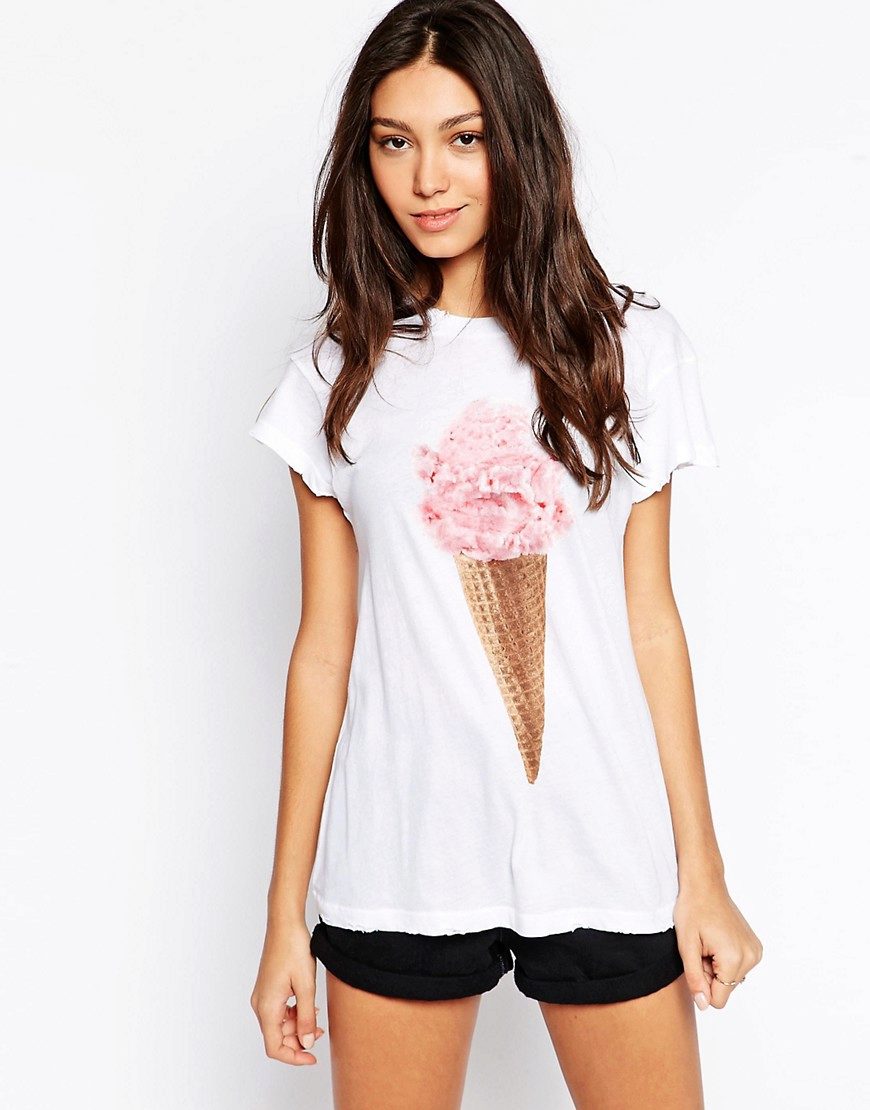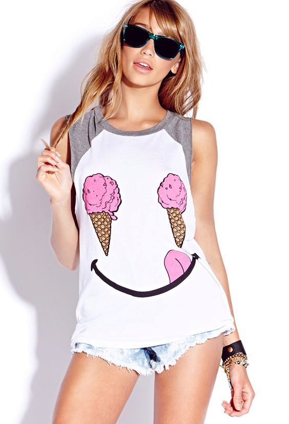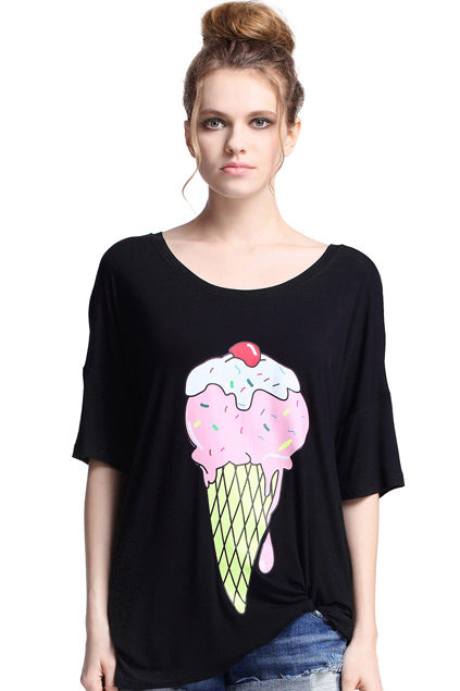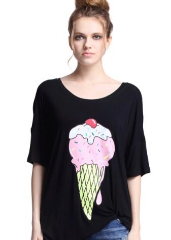The ice cream t-shirt is the perfect summer print. The image of ice cream give a highlight to the image, making it cute and attractive.
