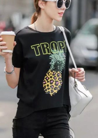 Images of strawberries, pineapples, bananas, lemons and other juicy fruits look very stylish and appetizing. You can wear such a T-shirt with any casual clothes, as well as wear a romantic date.