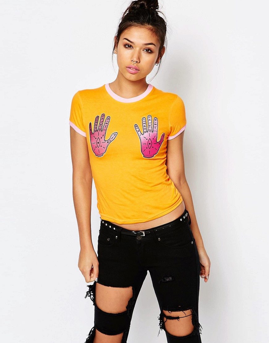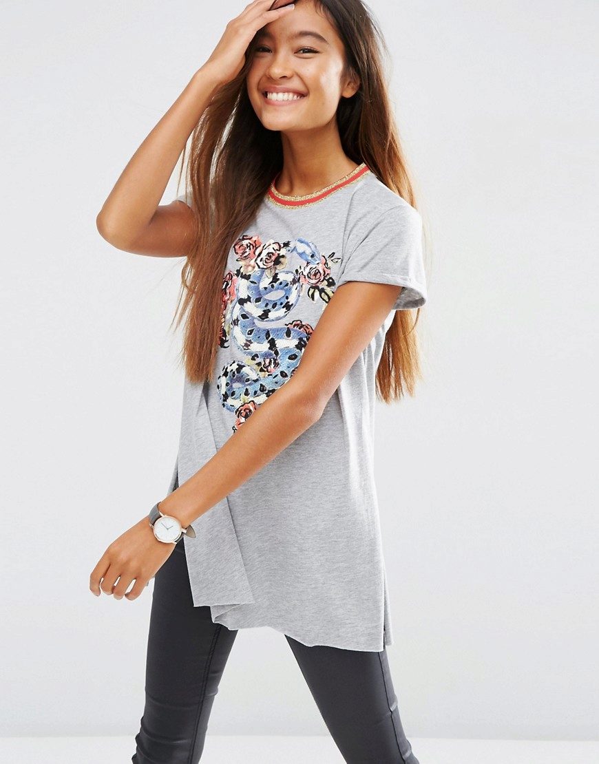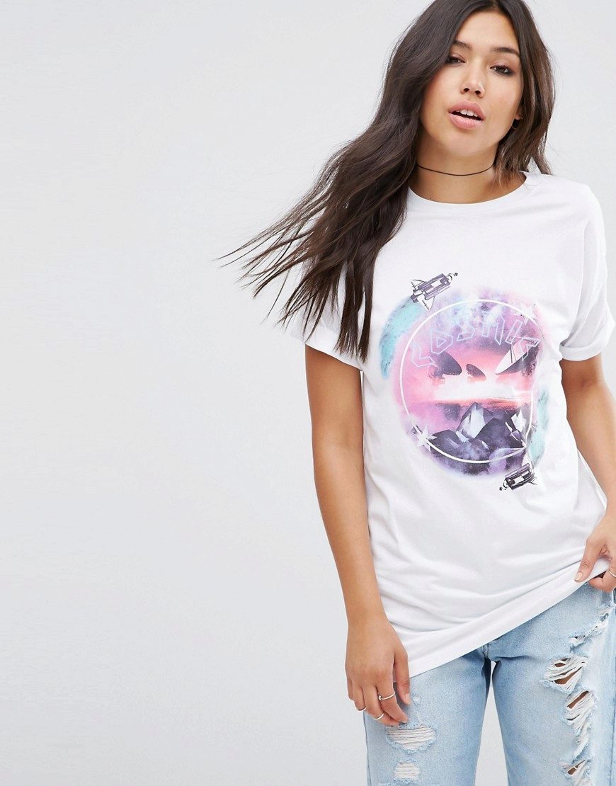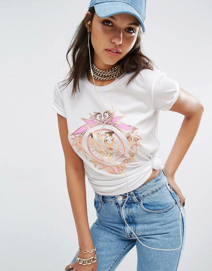 Trendy T-shirt with a print, if you add it with jeans, a short skirt or shorts and stylish accessories, is perfect for going to a club, bar or movie.