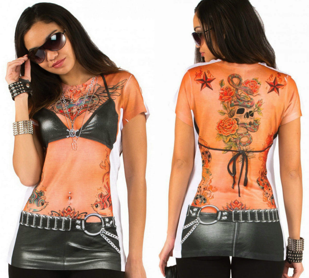 There are several options for a tattoo print, some show drawings of individual parts of the body, which look like they look through the holes on a T-shirt.
