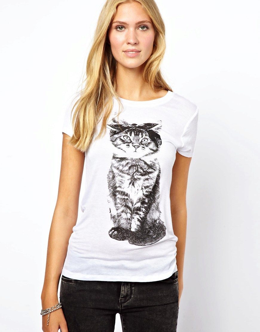 Most of the girls love the images of cats, because they are cute and fluffy animals that cause us affection. That is why T-shirts with the image of these animals can be found in the wardrobe of many girls.