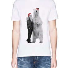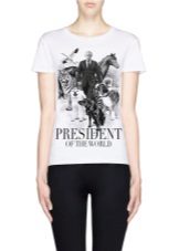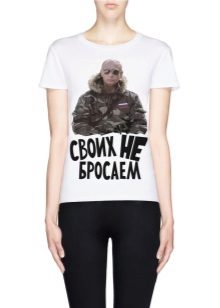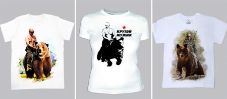 It is no secret that the bear is a symbol of our country. Therefore, it would be strange if there were no T-shirts with a photo of Putin and a bear. However, the president, sitting on a bear, causes admiration, pride and respect. It is for this reason that T-shirts with such a print are popular both among young girls and among older women.