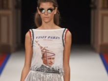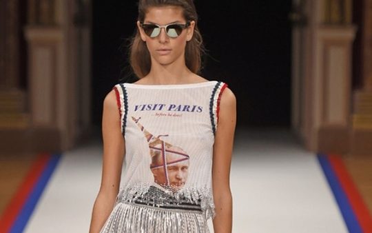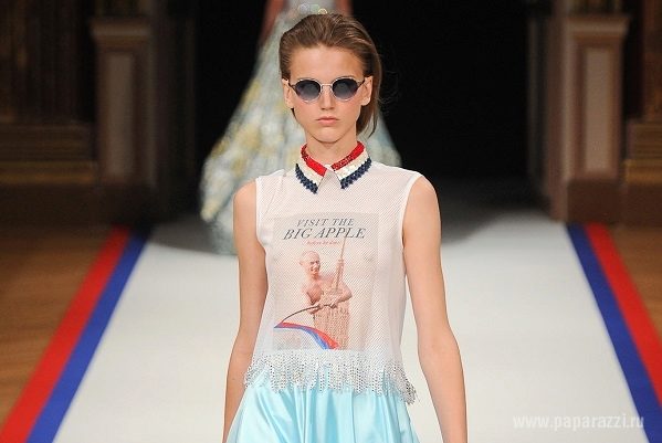 This popular designer also could not step aside and made a couple of models with the image of the president. They are distinguished by ironic phrases and patriotic prints. It looks cool, fashionable and unusual.