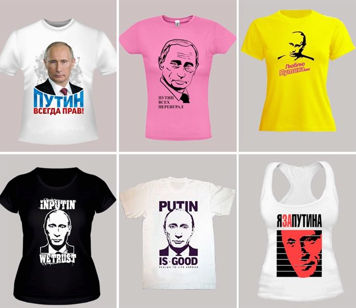 There are completely different images of Vladimir Vladimirovich on clothes. However, they all share one thing - the support of the president. These T-shirts are in free sale, so choose the right is not difficult.