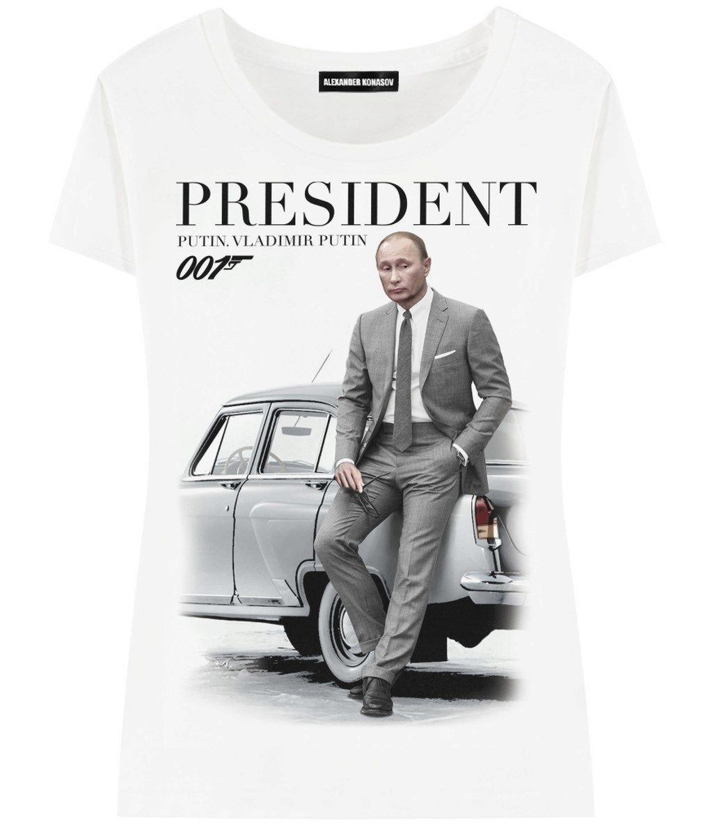 The works of Alexander Konasov are distinguished by unusual prints and extraordinary inscriptions. They literally fascinate and attract attention. The product with the image of the president of this brand will become a favorite thing in your wardrobe.