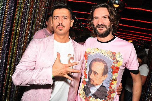 Also often in such clothes you can see Michael Galustyan, Alexander Ovechkin, Philip Kirkorov. By the way, the latter wore a jacket with a photo of Putin during his trip to America.
