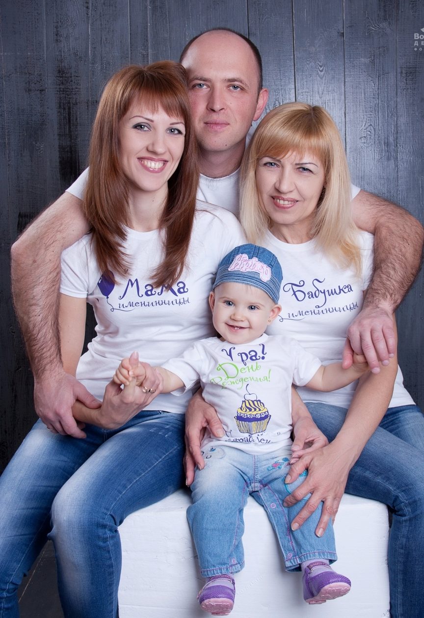 Funny pictures or inscriptions on T-shirts, made in the same style, funny, but at the same time, quite seriously emphasize the status of each family member and the relationship between them. The impression from the image of a family created in such an original way turns out to be very strong.