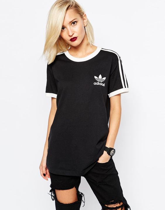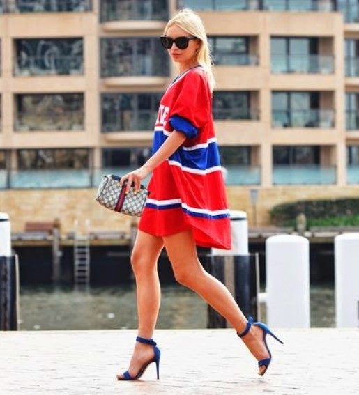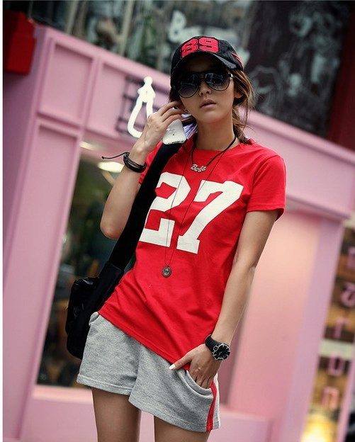 Sports T-shirts are perfectly combined with jeans of different styles, sports models of trousers, flared or trapezoid skirts. This t-shirt is quite possible to wear a sundress.