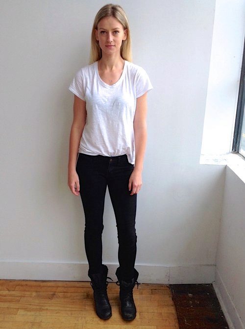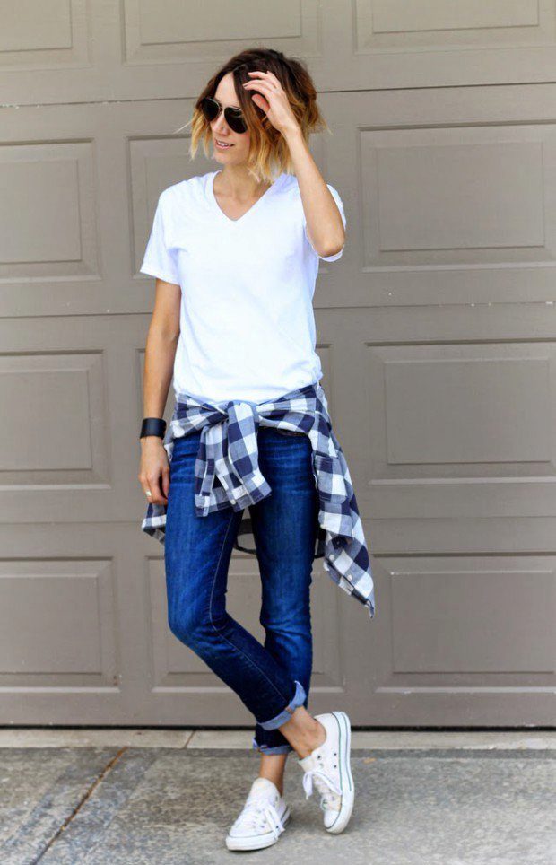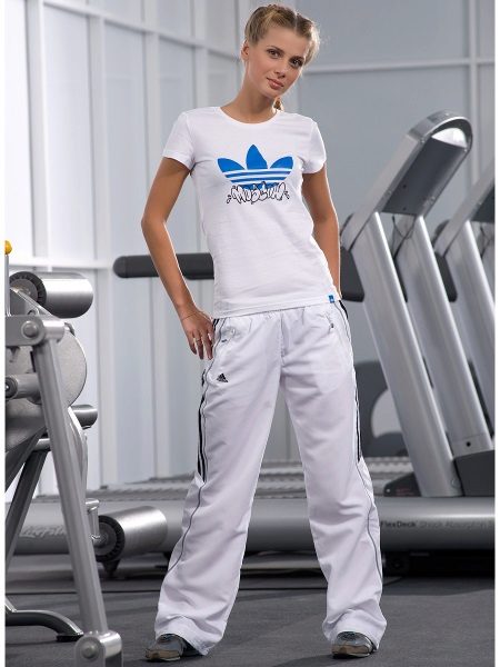 If the T-shirt is part of sports equipment, then the rest of the clothing should be appropriate: sweatpants, leotards, leggings, bicycles, shorts. As shoes you can choose sneakers or sneakers.