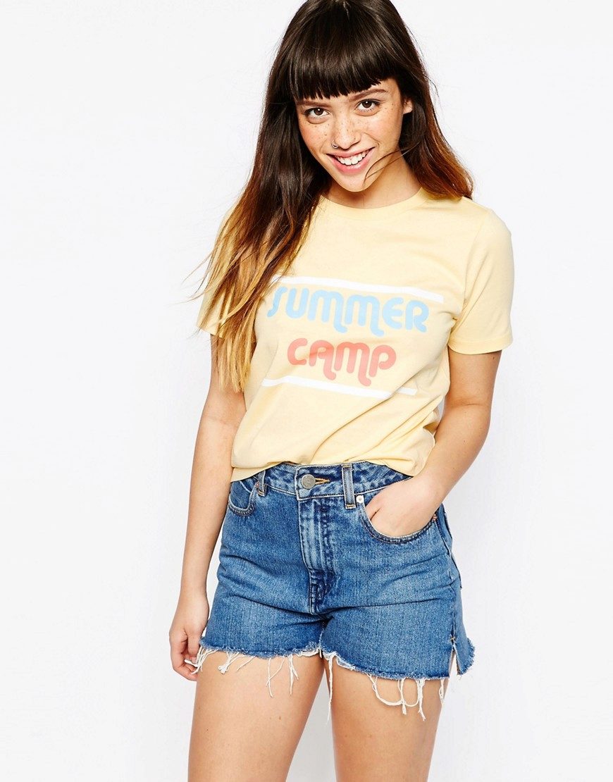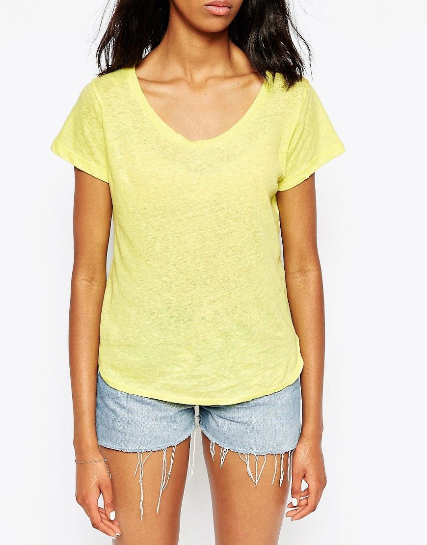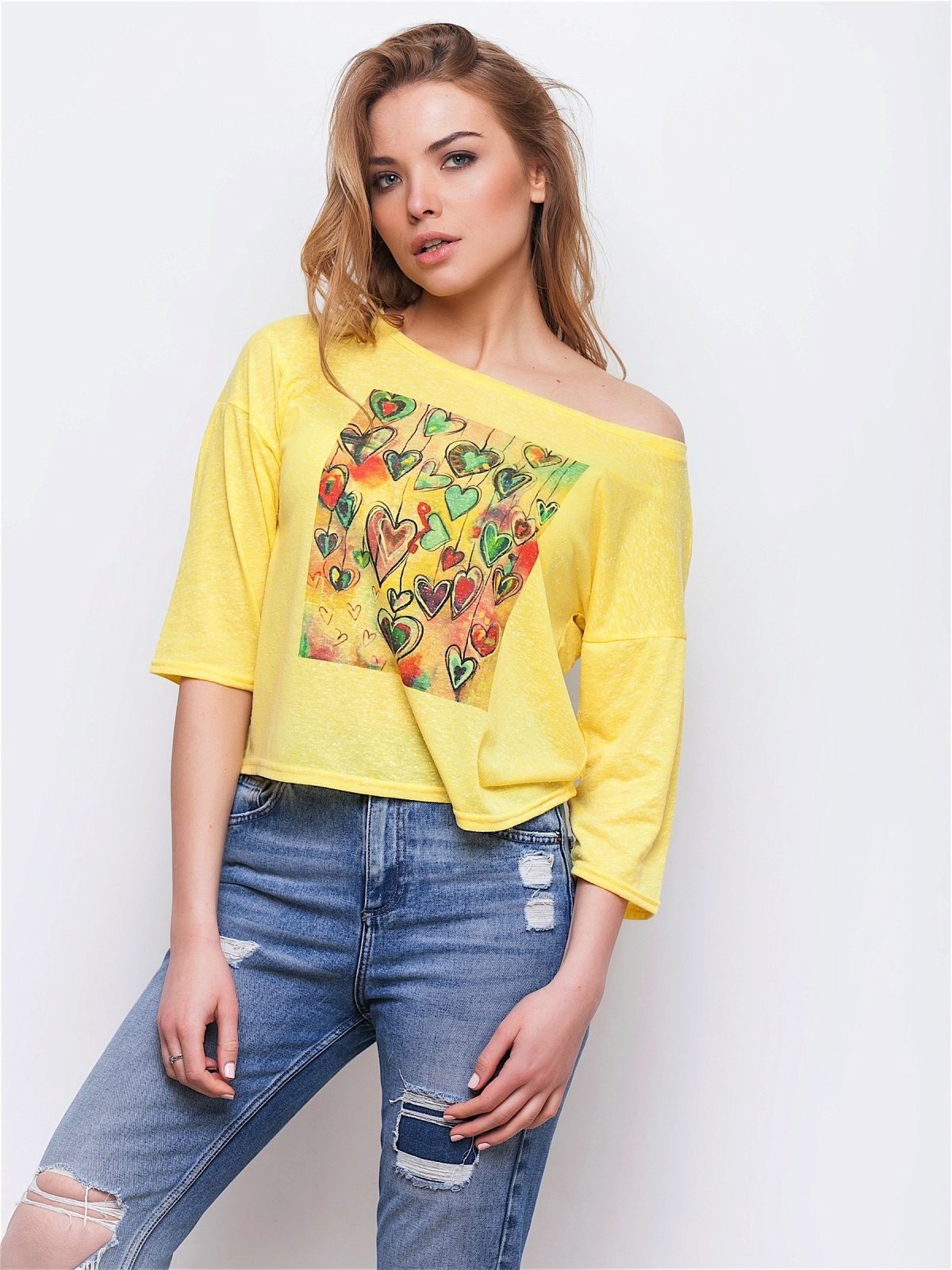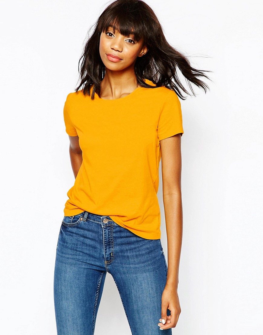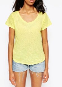 T-shirts are present in the wardrobe of most women, because it is comfortable, versatile and attractive clothing. When choosing a t-shirt for the warm season, women of fashion often prefer yellow because yellow tones look juicy, bright and positive. And indeed, such T-shirts refresh both the appearance of the beauty and her wardrobe.