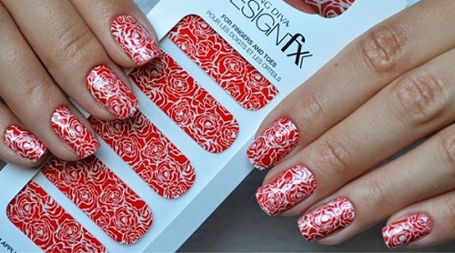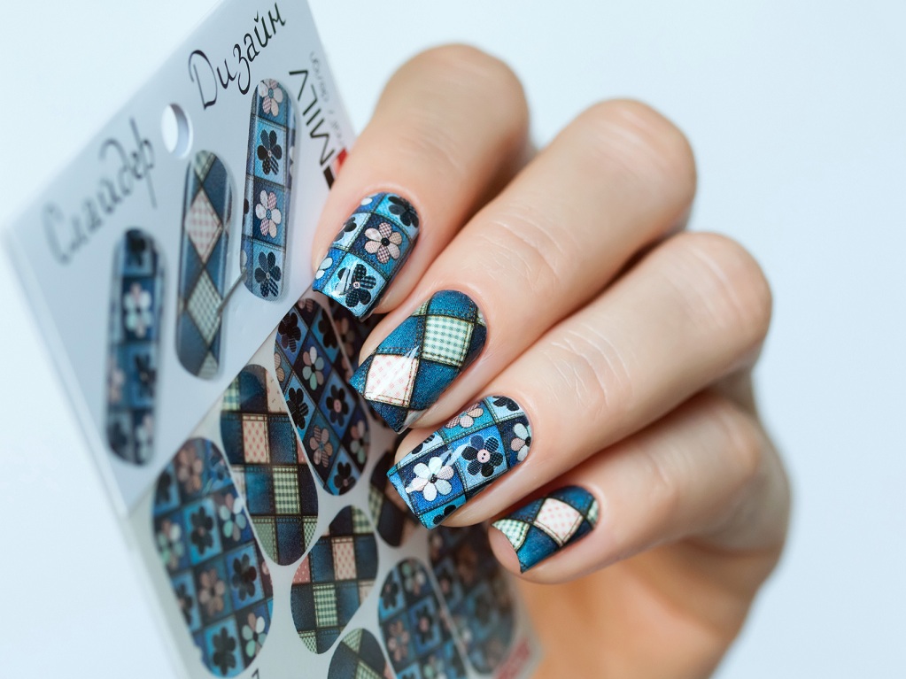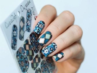 - Varnish sticker. Innovative tool in nail design. Stickers resemble foil with holography. The ease and ease of use allows you to perform a manicure at home, creating a quality coating. The selected sticker should be pasted on the nail and using a stick or soft cloth to smooth its surface, removing irregularities and air bubbles. The stickers have a wide palette of design and colors.The let-out form will suit any nails, the excess stickers are removed with nail scissors or a nail file. Resistance - about a week.