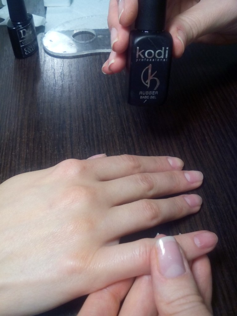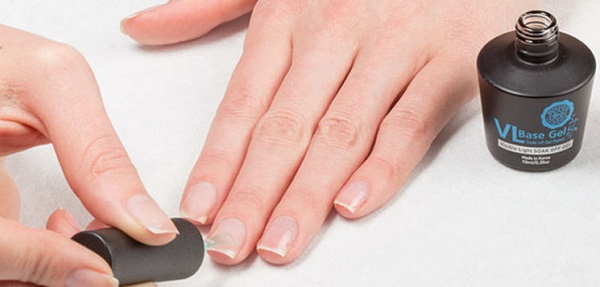 To align and strengthen the thin nail plate base must be applied in two layers, each of which is dried separately in the lamp. The base is kept on the nails for a long time, when removing it is necessary to carefully and carefully remove the layers, so as not to damage the nail. When removing it is best to use a special nozzle for a hardware manicure instead of a file.