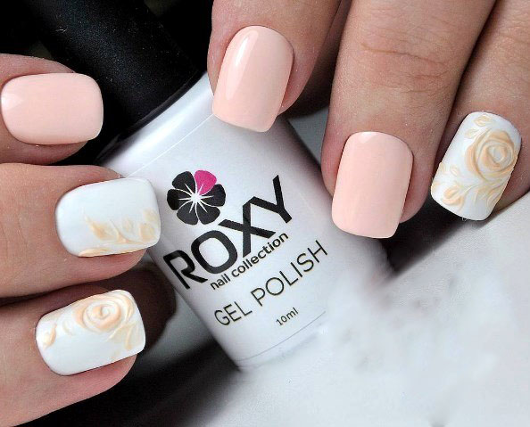 ROXY Nail Collection occupies an intermediate position between budget options and luxury. Produces products Russian company. In addition to the gels, it produces the entire line of tools for working with gel polishes, right up to the removers for removal. ROXY has a lot of advantages: elastic consistency, dense color and delicate aroma.The product is available in small volume bottles with a standard brush for applying in one motion. The coating is obtained resistant, radiant, easily removed by means of a related line. ROXY gel polishes are good in themselves and as a base for a complex design. On them qualitatively rests rub, powder, sparkles and rhinestones. It is necessary to work with a varnish accurately, it often flows on a cuticle.