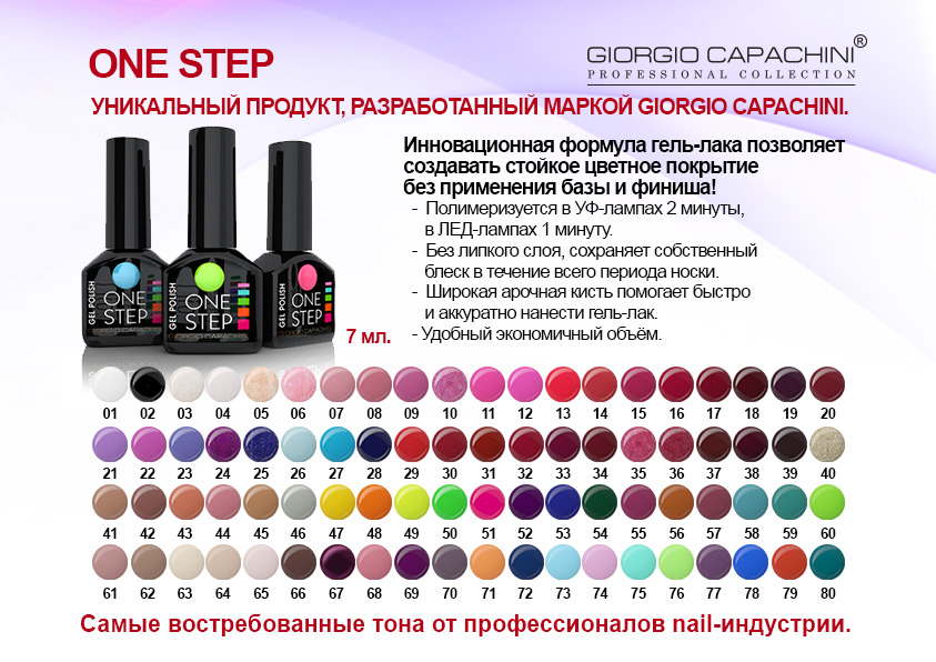 One step - it is a single-phase varnish for a quick manicure.Its consistency is thicker than Bluesky, but not as dense as good varnishes in the premium segment. The advantages of the tool in a low price and fast application.